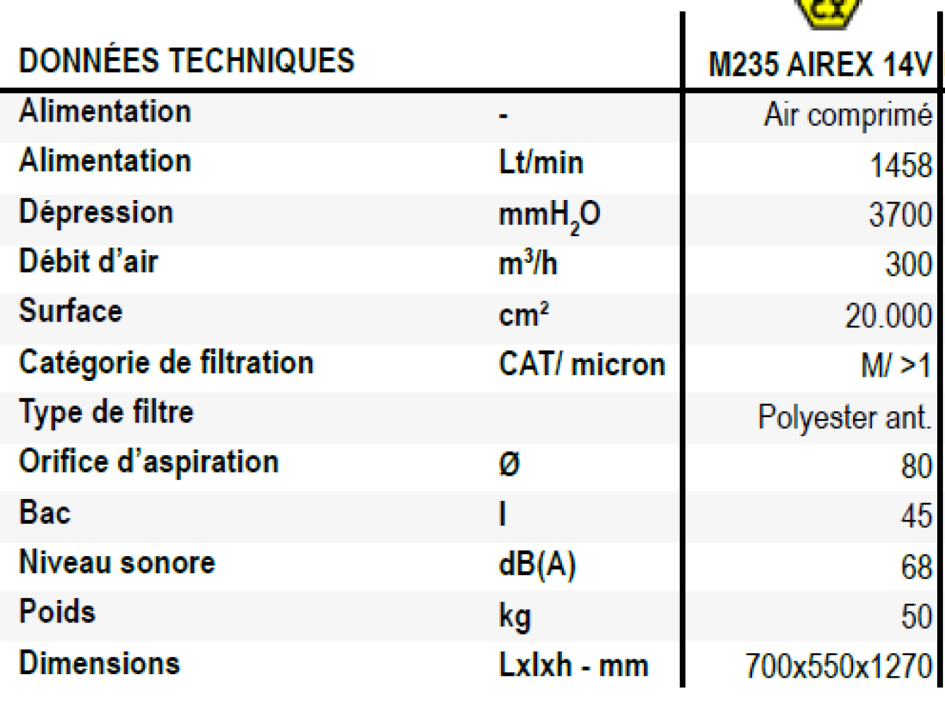 Les produits ATEX Air Comprimé disposent de certificat ATEX pour l’aspiration industrielle dans les zones de risque ATEX 1, 2 – 21, 22.