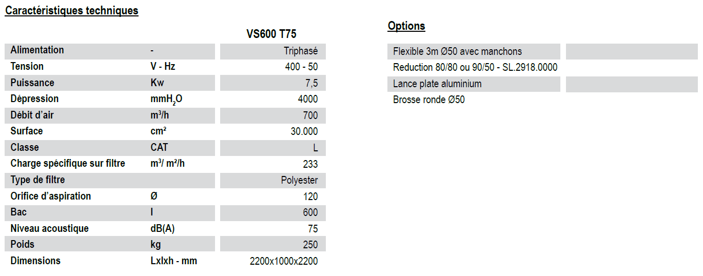 Aspirateur benne - V600 T75