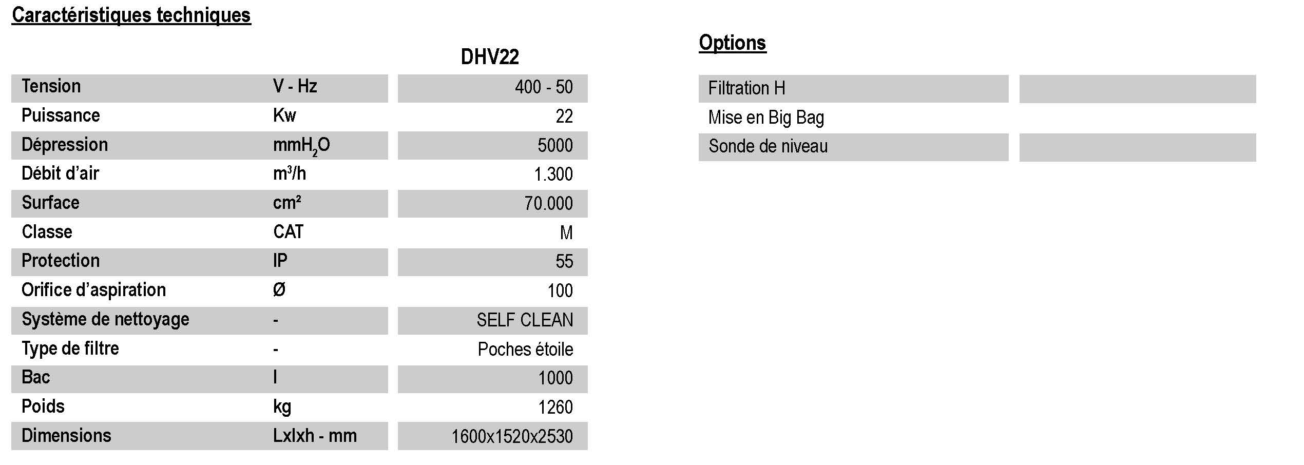 Le déplacement via un chariot élévateur de l'unité moteur est permis grâce à la présence de pitons. Une commande permet d'actionner facilement l'aspirateur sans devoir accéder directement au cadre électrique.