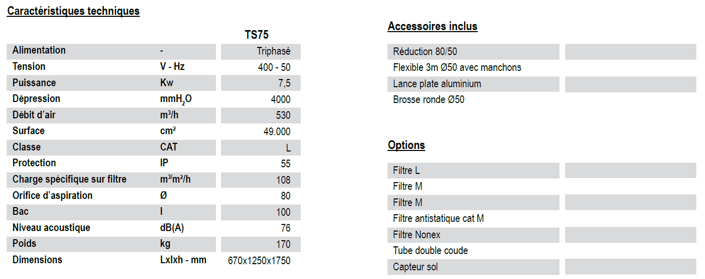 Aspirateur industriel grande puissance fixe ou mobile - TS75