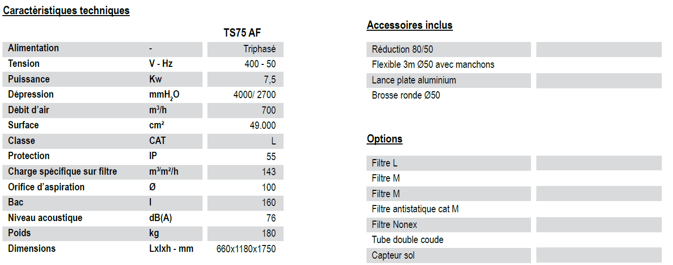 Aspirateur industriel grande puissance fixe ou mobile - TS75 AF