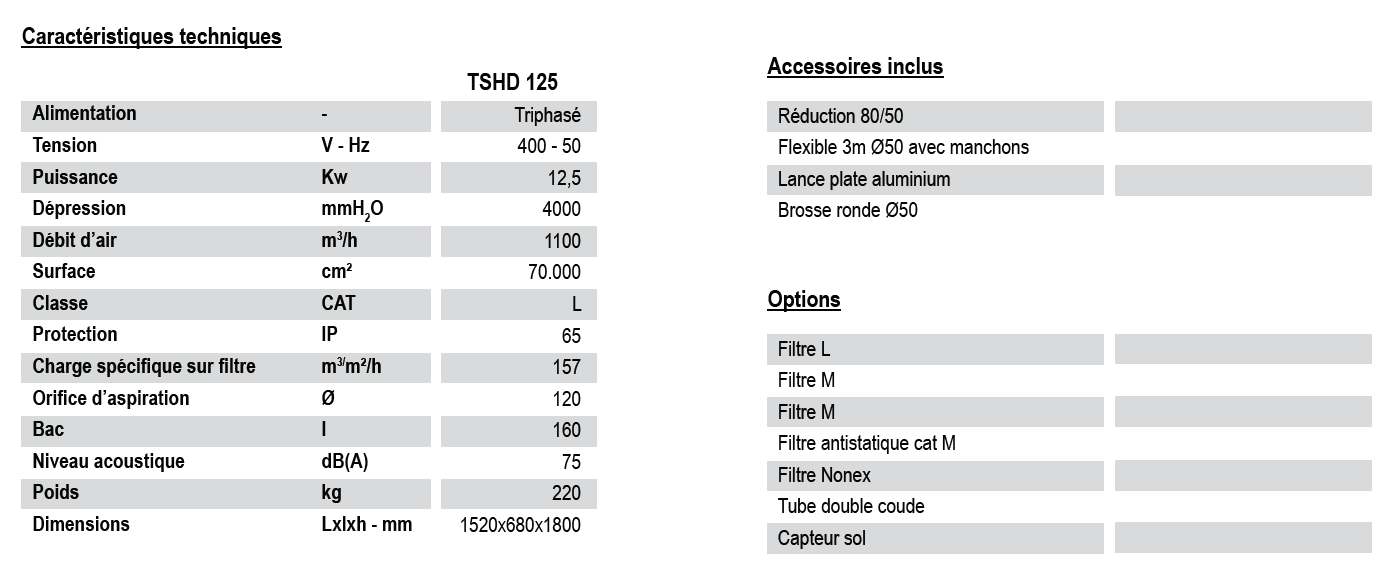 Aspirateur industriel grande puissance fixe ou mobile - TSHD 125