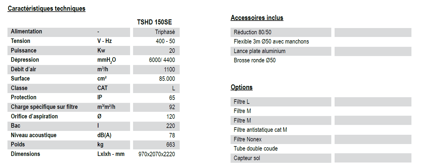 Aspirateur industriel grande puissance fixe ou mobile - TSHD 150SE