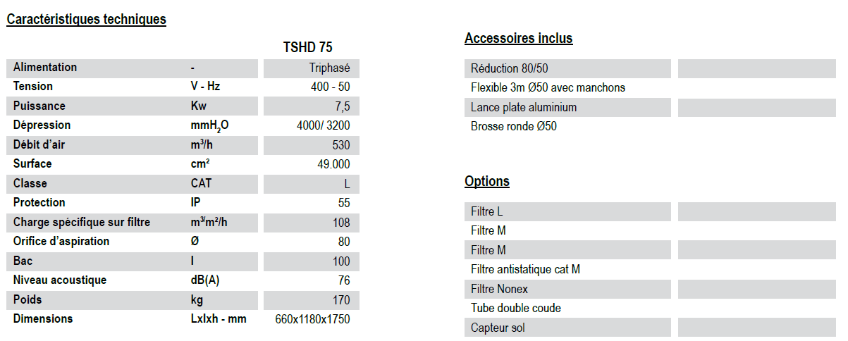 Aspirateur industriel grande puissance fixe ou mobile - TSHD 75
