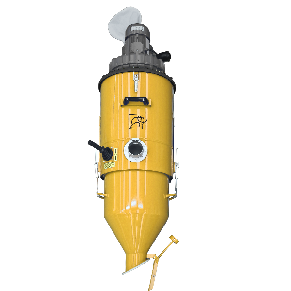 L'aspirateur, développé parallèlement aux grandes industries manufacturières, transporte les matériaux collectés et les décharge par le biais d'un système de décharge à clapet lesté à un endroit défini avec des big bags ou des conteneurs. D'autres systèmes de décharge, même automatiques, simplifient et accélèrent encore les opérations.