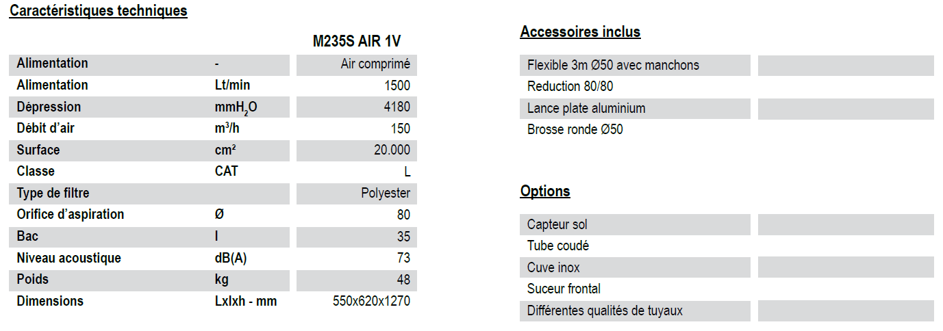 ASPIRATEUR PNEUMATIQUE HAUTE PERFORMANCE - M235S AIR 1V