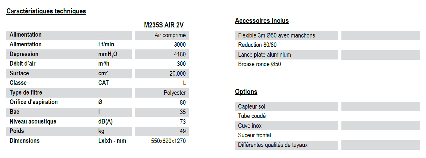 ASPIRATEUR PNEUMATIQUE HAUTE PERFORMANCE - M235S AIR 2V