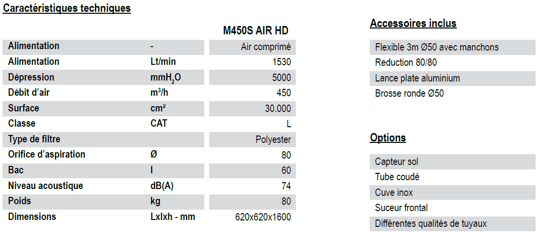 ASPIRATEUR PNEUMATIQUE HAUTE PERFORMANCE - M450S AIR HD