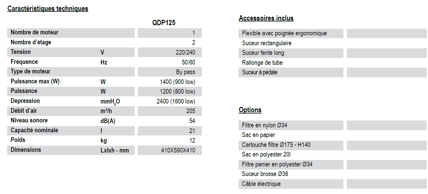 Aspirateur poussière pour le nettoyage courant - QDP125