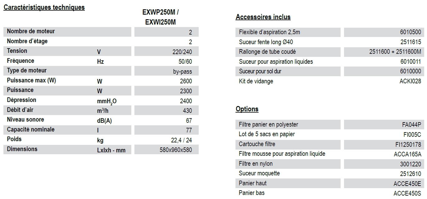 Aspirateurs professionnels pour gros travaux - EXWI250M cuve inox