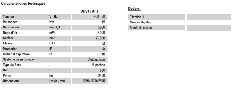 ASPIRATION MOBILE POUR USAGE INTENSIF - DHV45 AFT