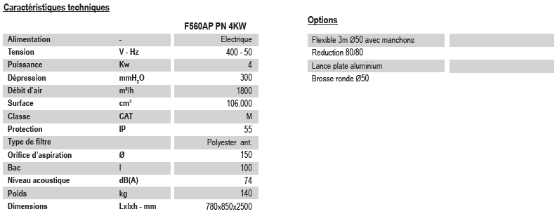 DÉPOUSSIÉREUR HAUTE PERFORMANCE - F560AP PN 4KW