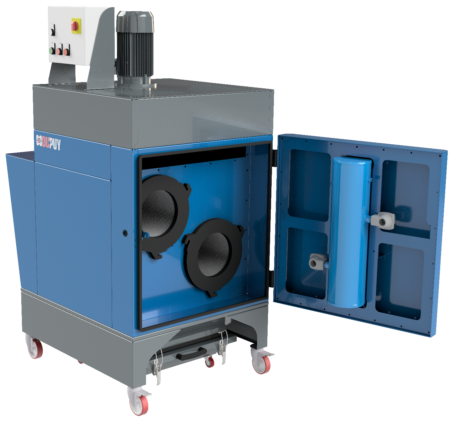 DEDUST 2 est un dépoussiéreur industriel pour poussières fines et fumées en suspension, il est équipé d'un ventilateur électrique qui garantit un débit d'air élevé. Grâce à cette caractéristique, l'aspirateur est adapté à l'extraction directe de grandes quantités de poussières en suspension présentes dans l'environnement de travail.