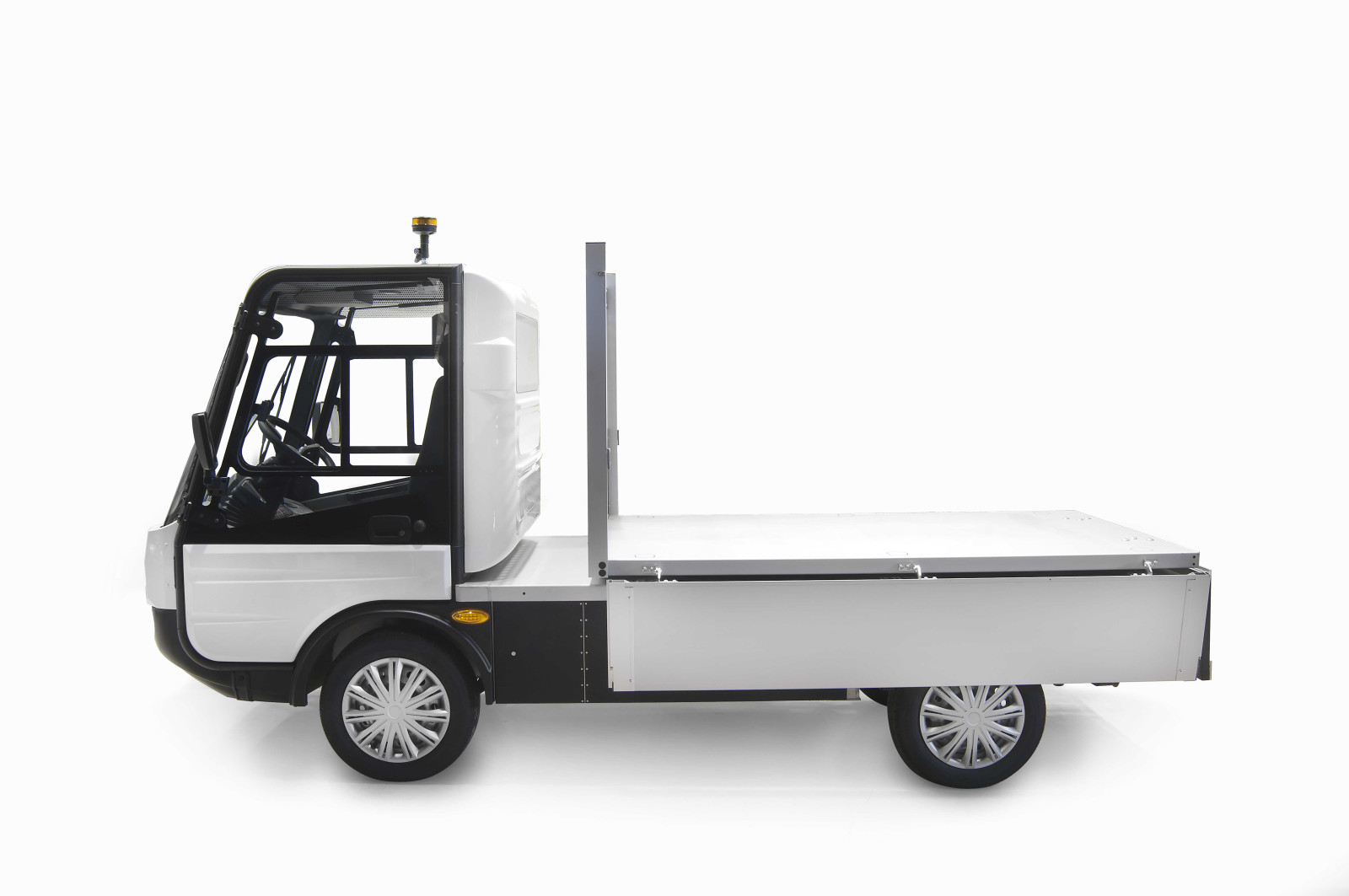 Le pick-up électrique Gastone avec plateau, disponible dans la version courte et longue, est la base sur laquelle plusieurs équipements peuvent être développés (standard ou sur-mesure)