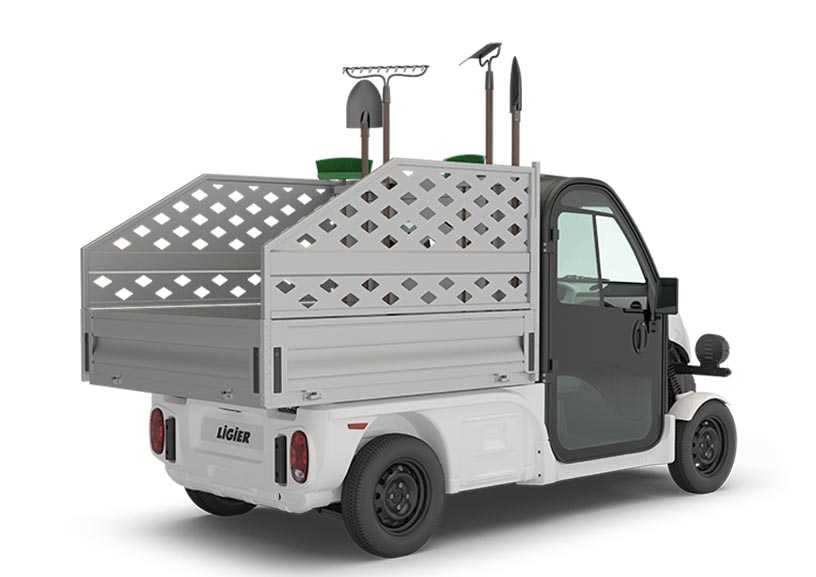 Le Pulse 4 en version longue est un utilitaire 100% électrique, homologué N1 (permis B obligatoire) qui s’adapte à votre activité grâce à son Clip System exclusif Ligier Professional.