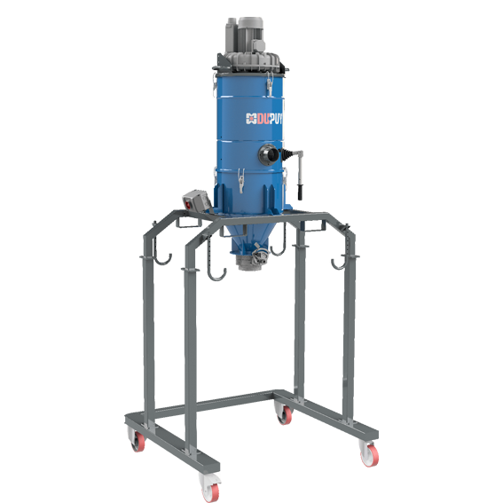 La structure cylindrique de l'aspirateur industriel contient un récipient d'une capacité de 100 litres. Idéale pour l'aspiration des solides et des poussières, sa conception intelligente lui permet de s'intégrer à votre système de production en fonction de vos besoins. Le matériau aspiré est facilement déchargé dans un tambour ou un BIG-BAG pour optimiser les temps de production. Cette machine est équipée d'un secoueur de filtre manuel pour assurer un nettoyage constant et optimal des filtres à grande surface. Cet aspirateur de silo est très polyvalent et vous permet de choisir entre différentes options pour chaque composant, de sa hauteur à la puissance de son moteur (3 à 4 kW).