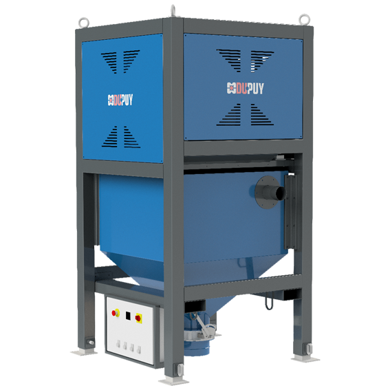 Un détecteur de niveau rotatif est installé dans la trémie pour arrêter l'aspiration lorsque les silos sont pleins.