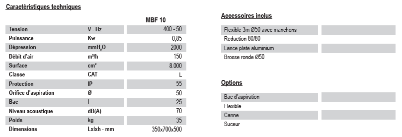 UNITÉ ASPIRANTE POUR POSTE DE TRAVAIL - MBF 10