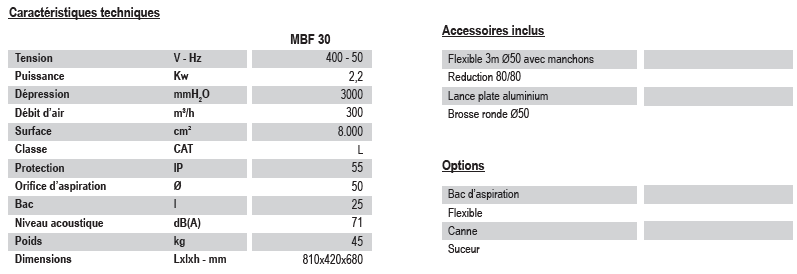 UNITÉ ASPIRANTE POUR POSTE DE TRAVAIL - MBF 30
